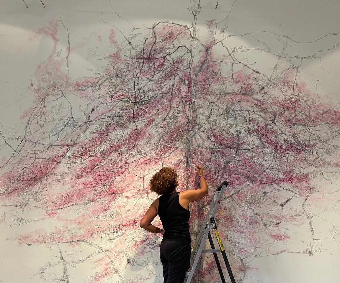 Visitiamo in anteprima e alla presenza dell’artista la mostra di Avish Kebrezadeh, pittrice iraniana formatasi a lungo in Italia, conosciuta per uno stile pittorico dinamico e per i suoi paesaggi naturali raffigurati con vorticose linee di grafite.